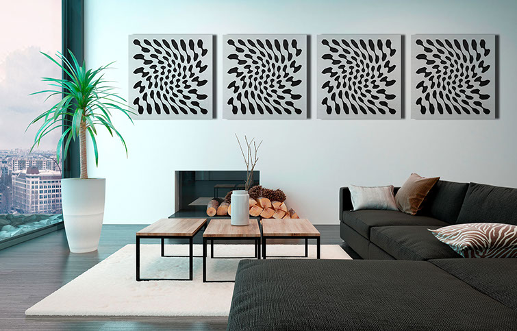 Acoustic treatment from a completely different perspective. Absorption & Diffusion with unlimited design ideas. Products that have absorbant properties made from special acoustic foam, fabric and wood. With the help of our acoustic measurement services, our products will be applied to the correct position in your room or studio. THION gives you versatile functional art and a unique touch for any interior.